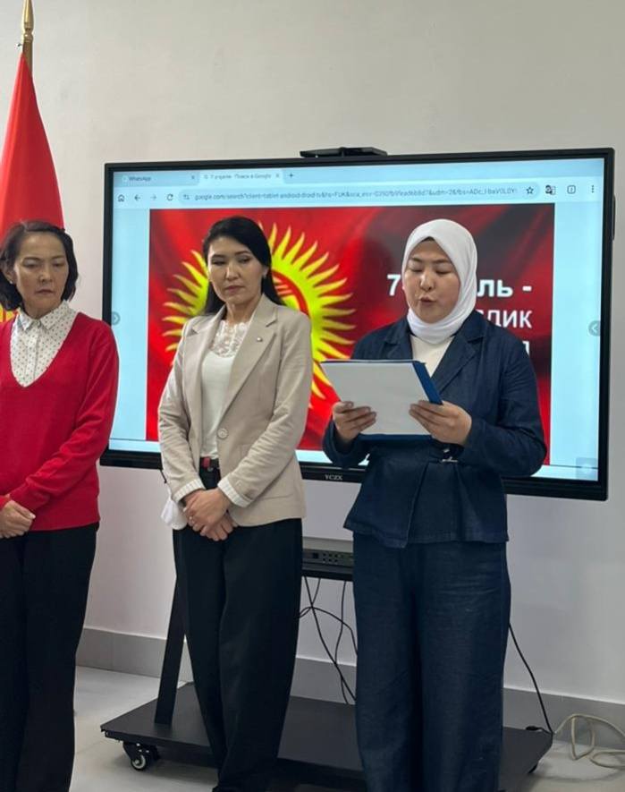 7-апрель —»Элдик революция күнүнө» карата Нарын педагогикалык колледжинде студенттердин катышуусунда эскерүү линейкасы өткөрүлдү. Иш-чараны окутуучу Нестан Оморова уюштуруп, мазмундуу тарбиялык саат өткөрдү.