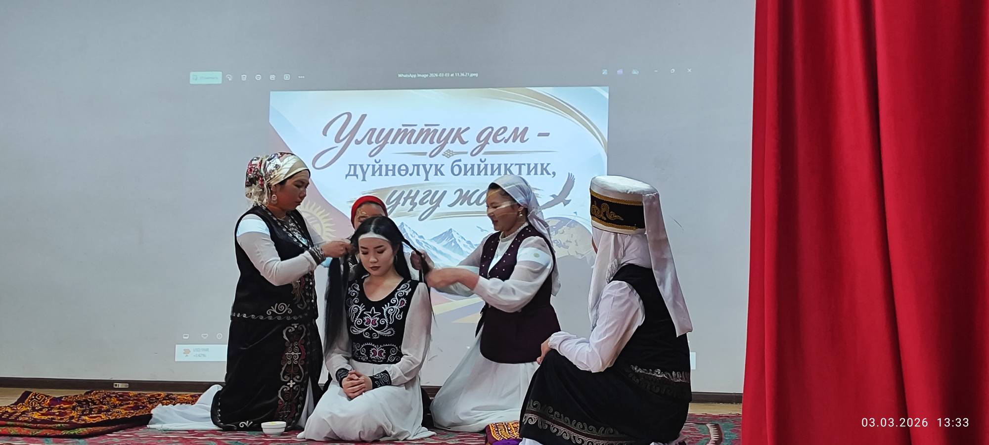 Ачылыш аземинен кийин окутуучу Элиза Мукашова “Улуттук баалуулук – ар бир бала бакчанын негизги булагы” аттуу тарбиялык саат өткөрдү. Иш-чаранын жүрүшүндө студенттер улуттук каада-салттардын, нарк-насилдин жана маданий мурастын мектепке чейинки тарбия берүүдөгү орду тууралуу кеңири маалымат беришти. Ошондой эле улуттук оюндар, каада-салттар жана тарбиялык ыкмалар практикалык мисалдар менен көрсөтүлдү.
